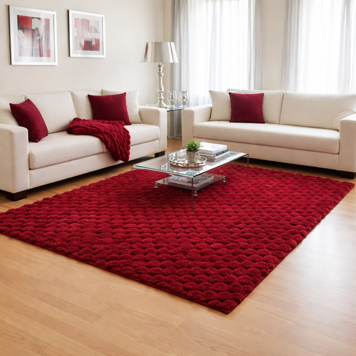 Deep Red Plush Area Rug – Soft, Luxurious Living Room Decor 3*5